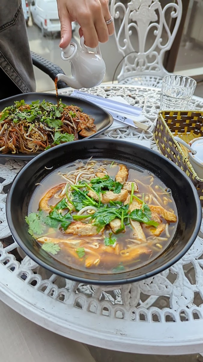 Nice little vegetarian place nestled inside a courtyard with excellent service by a friendly Vietnamese couple. Authentic food with the most delicious rice noodles! A must try in helsinki!